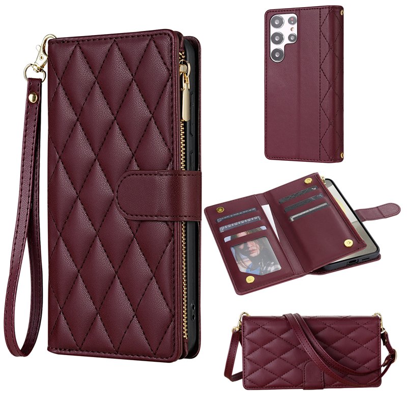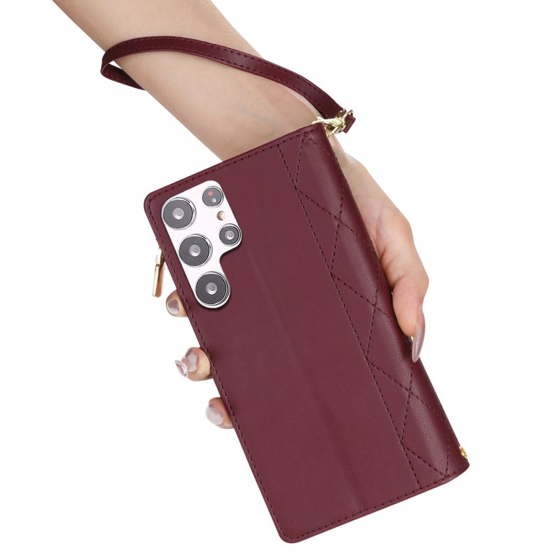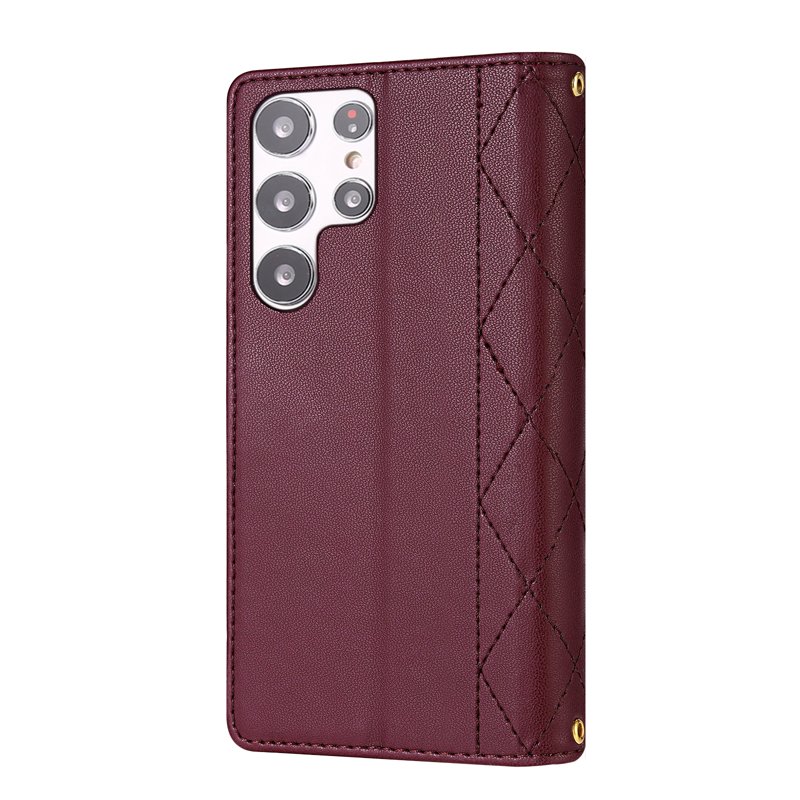 Skydda din Samsung Galaxy S26 Ultra med det eleganta Rhombus Stitching Leather Wallet Phone Cover i vinröd. Detta fodral kombinerar stil och funktionalitet. Med utmärkt skydd och smart förvaring är det det perfekta valet för den moderna användaren.