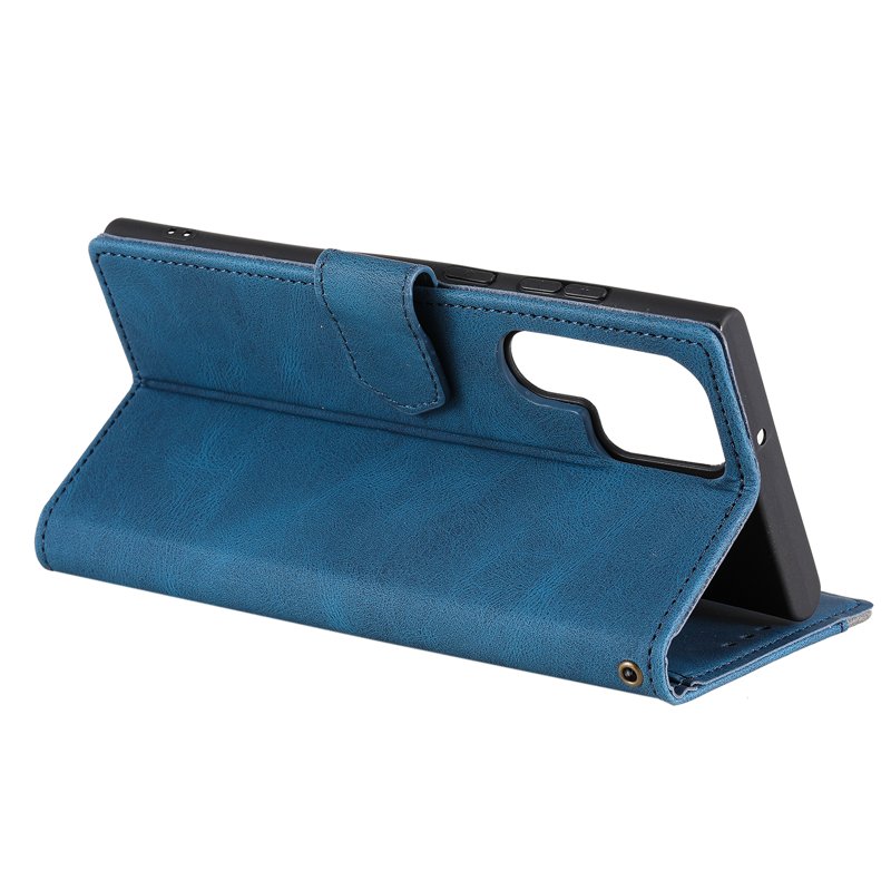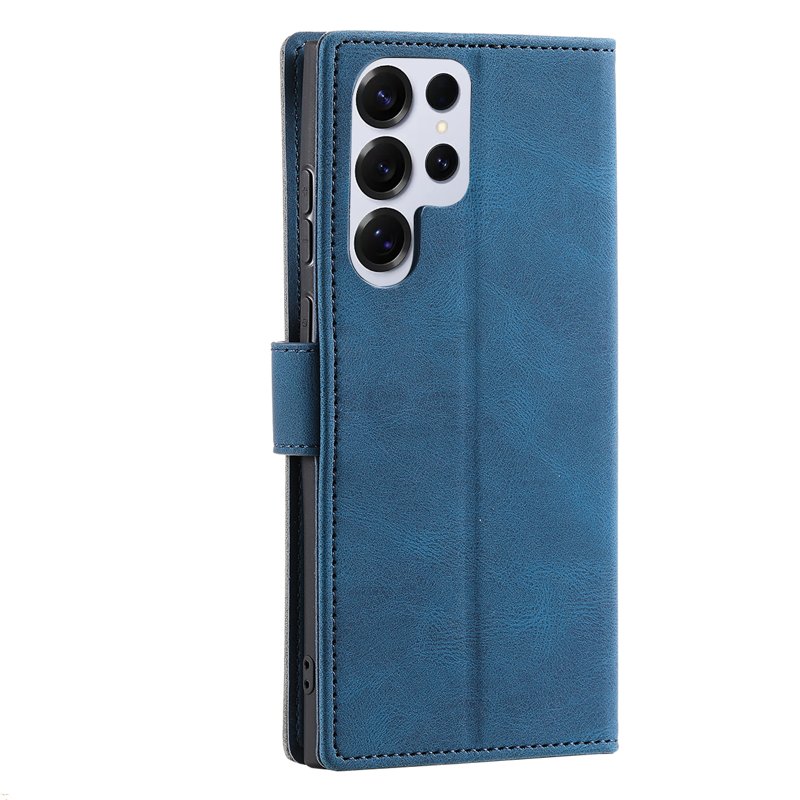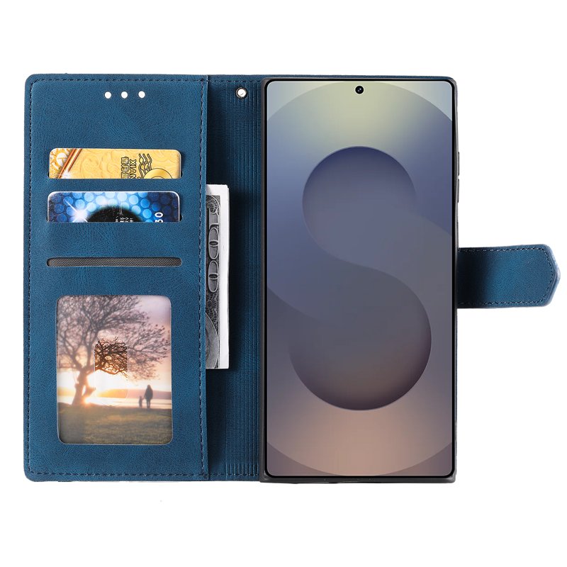 Skydda din Samsung Galaxy S26 Ultra med detta stiliga och hållbara läderfodral. Fodralet har en unik splicing-design och erbjuder både funktionalitet och elegans. Med en praktisk plånboksfunktion och en handledsrem är detta fodral det perfekta valet för den moderna användaren.