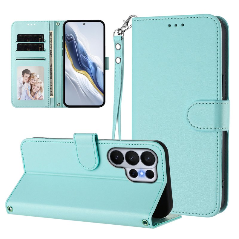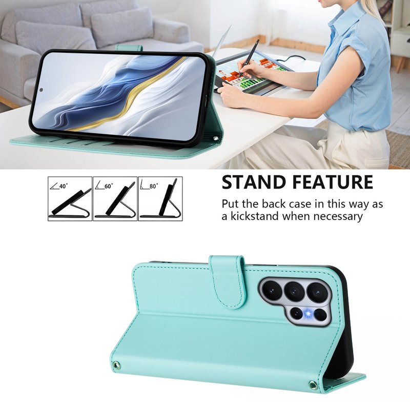 Samsung Galaxy S26 Ultra Fodral Äkta Läder Ställ - Mintgrön
