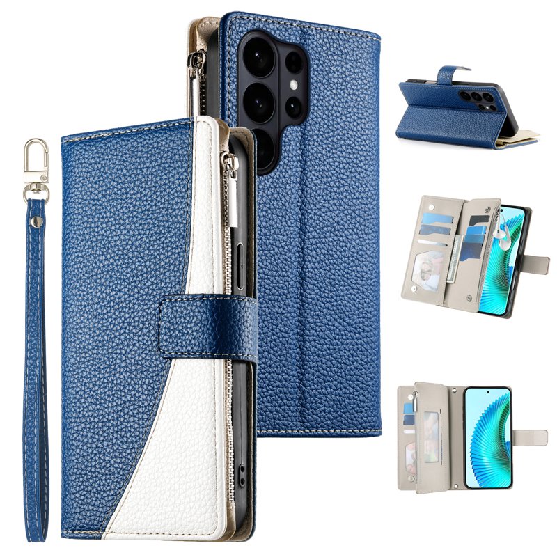 Skydda din Samsung Galaxy S26 Ultra med detta stiliga Zipper Wallet. Denna mörkblå läderflip-fodral med färgsplicing erbjuder både funktionalitet och elegans. Med flera förvaringsalternativ och ett praktiskt bärsystem är detta fodral perfekt för den moderna livsstilen.