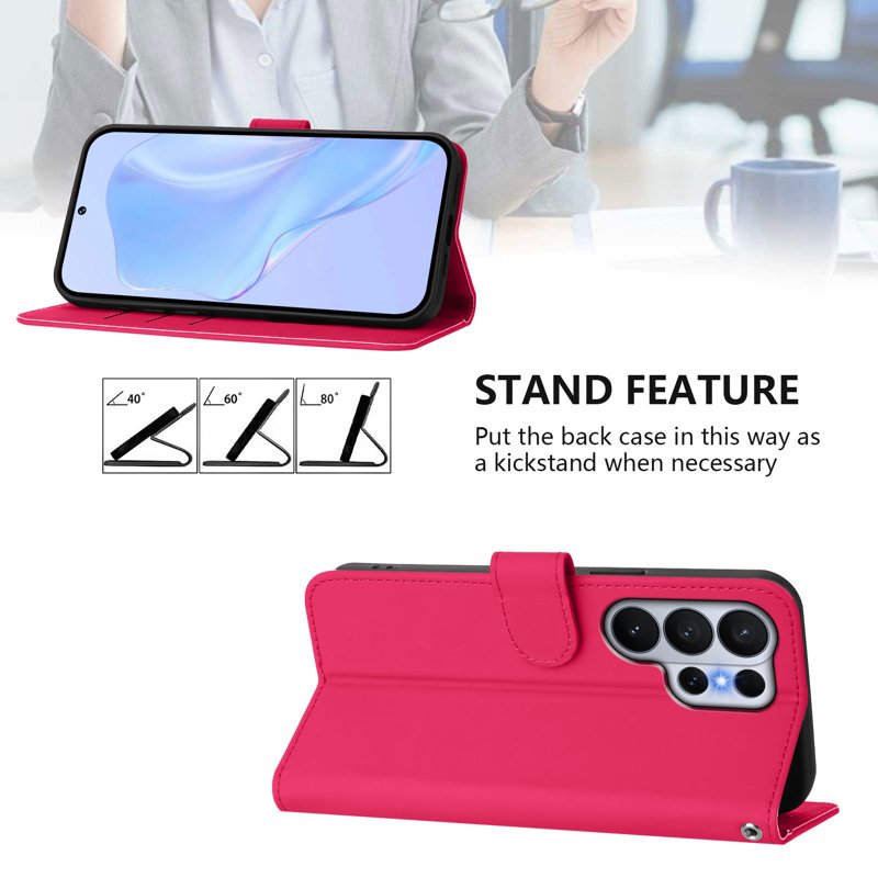 Skydda din Samsung Galaxy S26 Ultra med detta eleganta och funktionella plånboksfodral i rosaröd färg. Tillverkat av högkvalitativt PU-läder och mjukt TPU, erbjuder detta fodral både stil och hållbarhet. Med praktiska funktioner som kortfack och en inbyggd ställfunktion, är detta fodral perfekt för den moderna användaren.