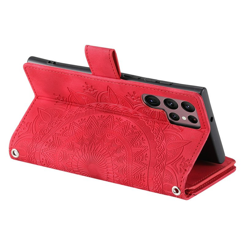 Skydda din Samsung Galaxy S26 Ultra med denna stiliga plånboksfodral i PU-läder med mandala blommönster. Fodralet kombinerar funktionalitet och mode, vilket gör det till det perfekta valet för den moderna användaren. Med praktiska fack för kort och en säker stängning är detta fodral både snyggt och funktionellt.