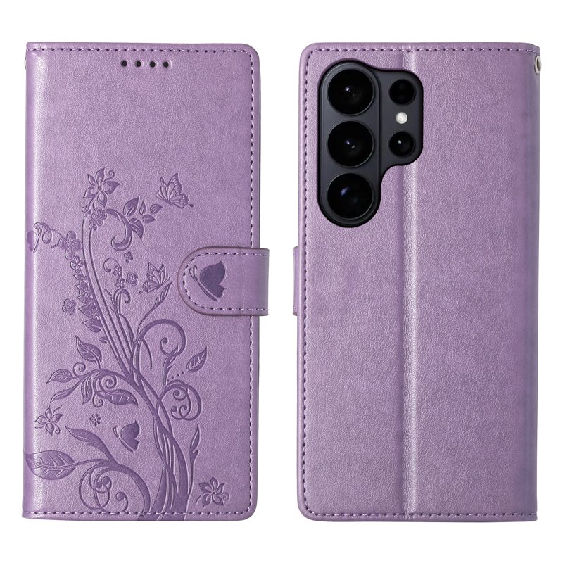Skydda din Samsung Galaxy S26 Ultra med denna stiliga plånboksfodral i PU-läder. Med en vacker präglad fjärilsblommönster kombinerar den både funktion och elegans. Fodralet erbjuder flera praktiska funktioner som gör det enkelt att hantera dina kort och kontanter, samtidigt som det ger ett komplett skydd för din telefon.