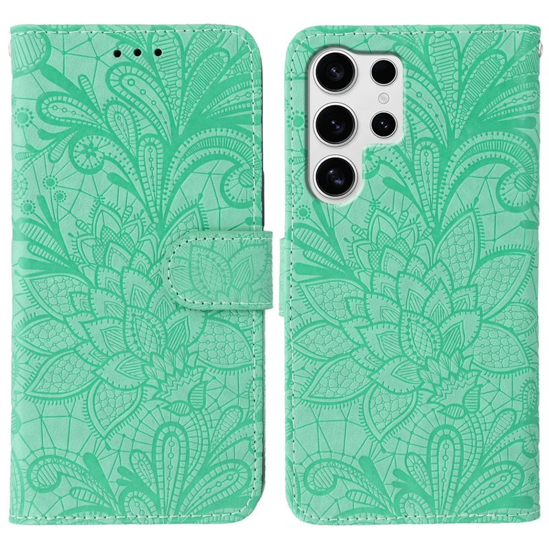 Skydda din Samsung Galaxy S26 Ultra med detta eleganta Lace Flowers PU Leather Flip Wallet Phone Cover i grön. Denna mobilskal kombinerar stil och funktionalitet, vilket ger ett utmärkt skydd samtidigt som den tillför en sofistikerad touch. Med smarta fack och en praktisk design är detta fodral den perfekta lösningen för den moderna användaren.