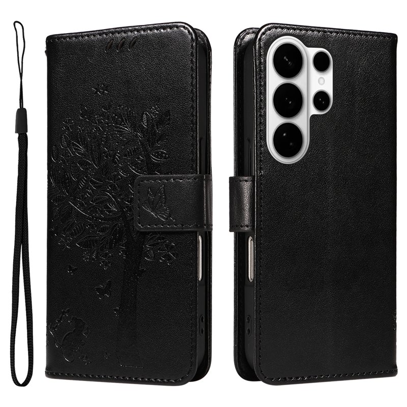 Samsung Galaxy S26 Ultra Fodral PU Läder Katttree Mönster - Svart