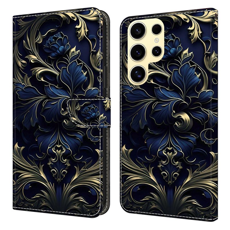 Samsung Galaxy S26 Ultra Fodral PU Läder Med Ställ - Blå Blomma