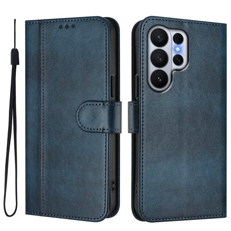 Samsung Galaxy S26 Ultra Fodral Ställ Retro Textur Äkta Läder - Blå