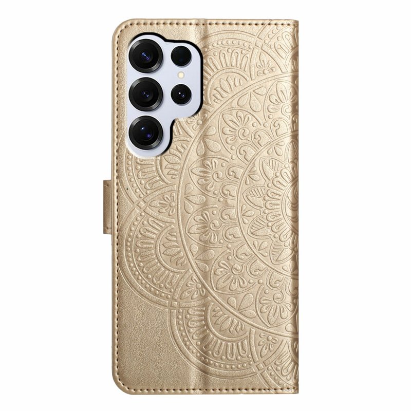 Skydda din Samsung Galaxy S26 Ultra med detta eleganta läderfodral. Fodralet har en vacker mandala-mönstring och praktiska kortfickor. Det är både stiligt och funktionellt, perfekt för den moderna användaren.