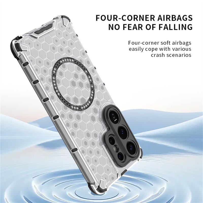Skydda din Samsung Galaxy S26 Ultra med detta magnetiska skal i honeycomb-design. Tillverkat av TPU och PC, erbjuder det både mjukhet och hårdhet för optimal säkerhet. Den eleganta designen och förstärkta hörnen ger ett stilrent utseende och ökad hållbarhet. Perfekt för den som vill ha både skydd och stil.