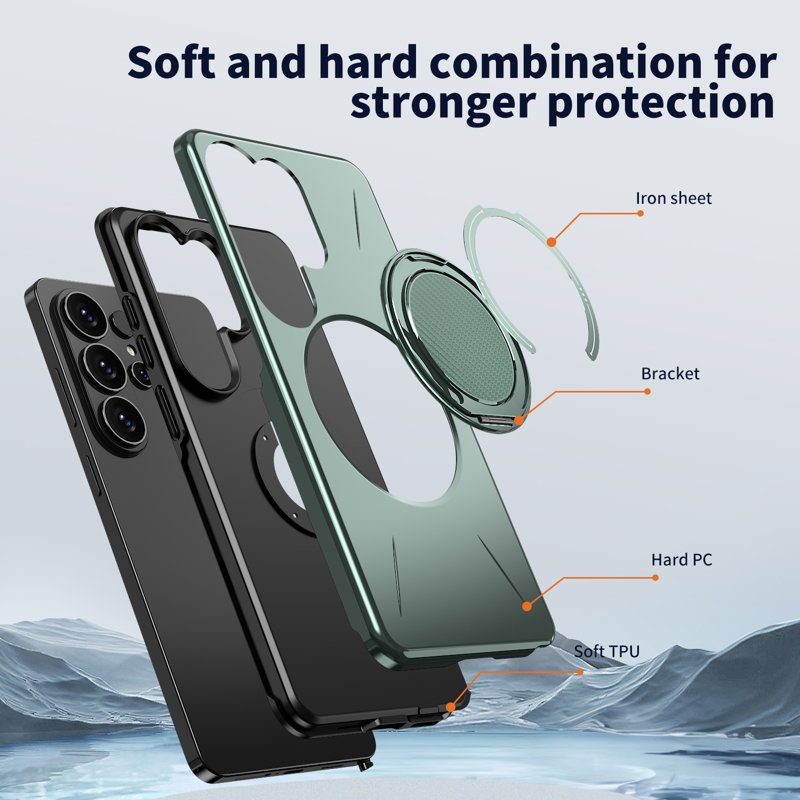 Skydda din Samsung Galaxy S26 Ultra med detta magnetiska TPU + PC-fodral. Det erbjuder överlägsen skydd och funktionalitet. Med en roterande kickstand får du också bekvämlighet och flexibilitet i användningen. Detta fodral är designat för att ge dig full tillgång till alla funktioner utan att kompromissa med stil eller säkerhet.