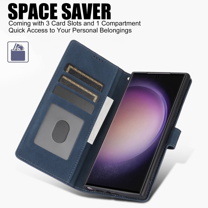 Skydda din Samsung Galaxy S26 Ultra med detta eleganta och funktionella PU Leather Phone Cover. Med en stilren design och praktiska funktioner är detta fodral perfekt för den moderna användaren. Håll dina kort och kontanter organiserade samtidigt som du njuter av en bekväm visningsupplevelse.