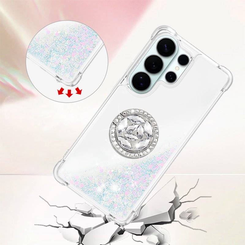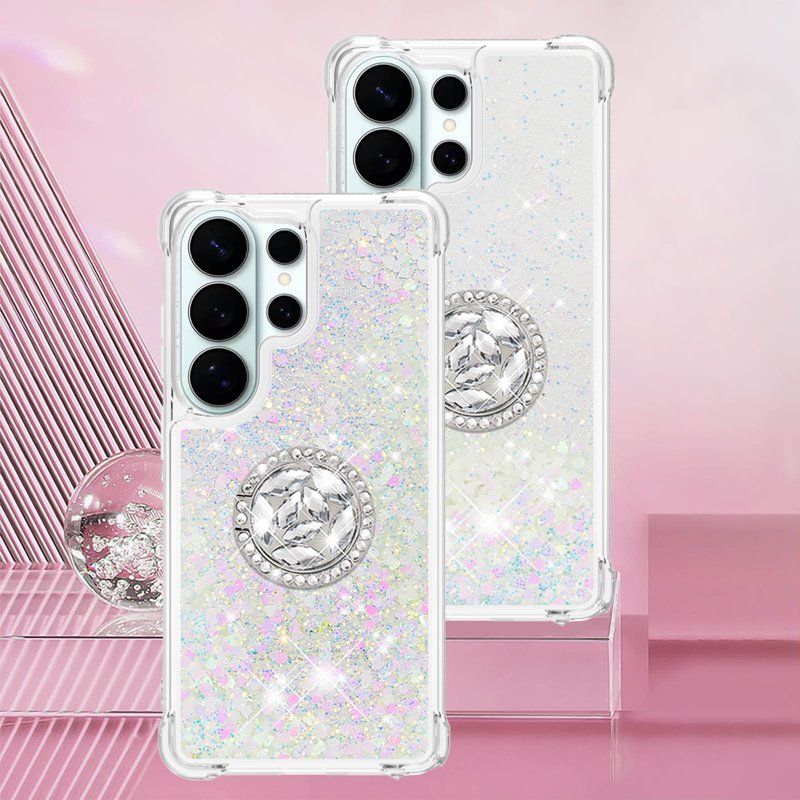 Skydda din Samsung Galaxy S26 Ultra med detta TPU-fodral med kickstand. Det är både stiligt och funktionellt. Fodralet har en unik design med flytande glitter och erbjuder överlägsen stöttålighet. Med en inbyggd kickstand kan du enkelt använda telefonen handsfree. Perfekt för den som vill ha både skydd och stil.