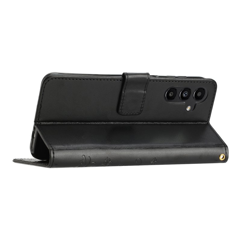 Handla denna produkt Samsung Galaxy S26 Plus Plånboksfodral Konstläder Fjäril Blomma - Svart