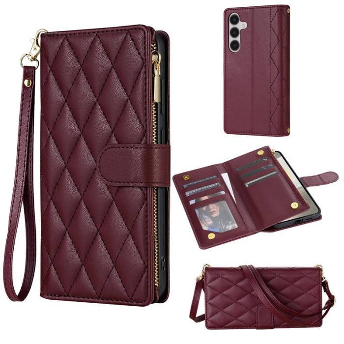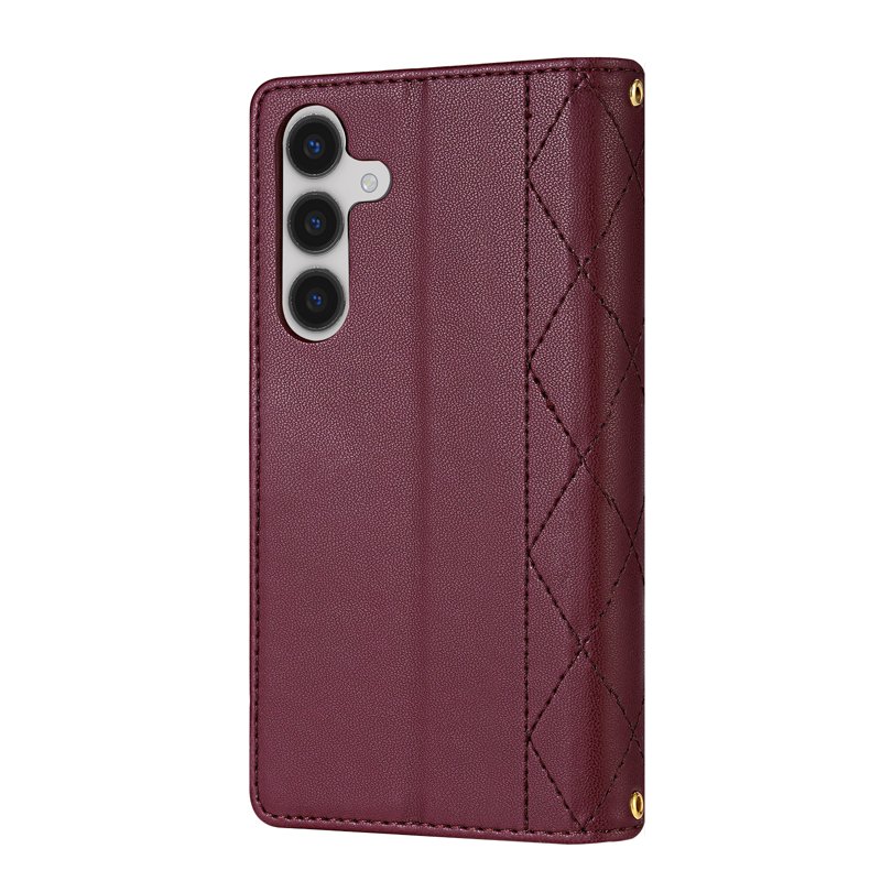 Skydda din Samsung Galaxy S26+ med det eleganta Rhombus Stitching Leather Wallet Phone Cover i vinröd. Detta fodral kombinerar stil och funktionalitet. Med smarta förvaringslösningar och robust skydd är det det perfekta valet för den moderna användaren.