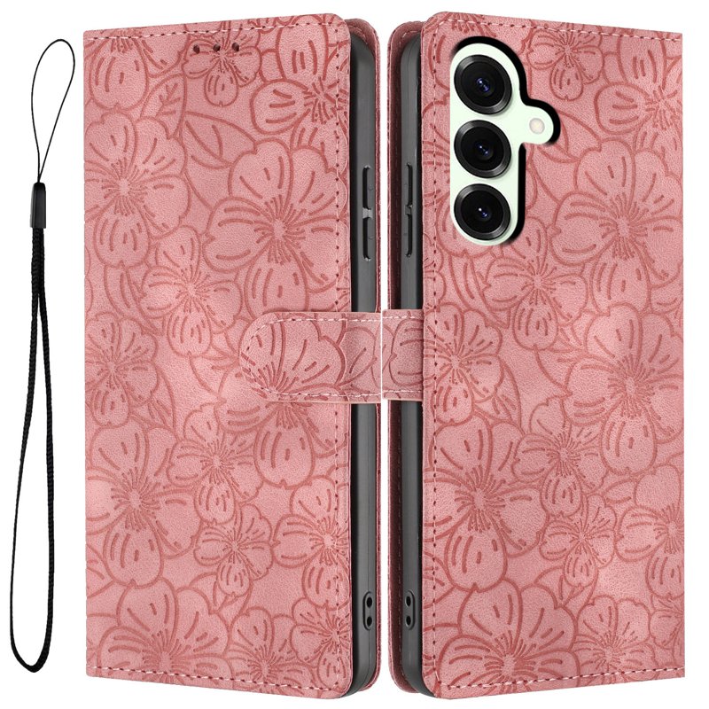 Handla denna produkt Samsung Galaxy S26 Plus Fodral Blommönster Äkta Läder Ställ - Rosa