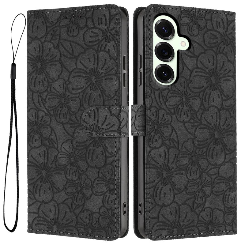 Samsung Galaxy S26 Plus Fodral Konstläder Cherry Blossom - Svart