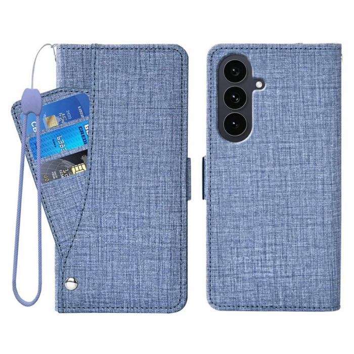 Skydda din Samsung Galaxy S26+ med det stiliga Jean Cloth Texture PU Leather Wallet Phone Cover. Denna plånboksfodral kombinerar funktionalitet och elegans. Med sin unika denimstruktur och smarta design är den perfekt för både vardag och fest.