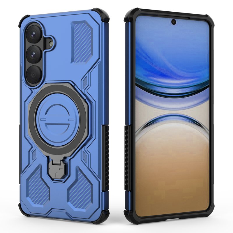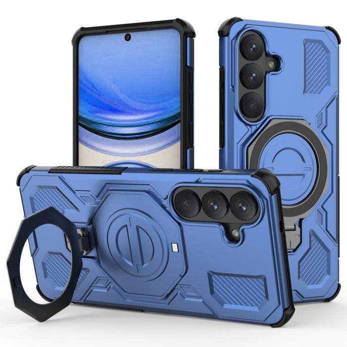 Skydda din Samsung Galaxy S26+ med detta magnetiska fodral. Det roterande metallstället ger flexibilitet och bekvämlighet. Fodralet är både hållbart och lätt, vilket gör det till ett utmärkt val för daglig användning. Med stöd för magnetiska tillbehör blir det ännu enklare att använda din telefon.