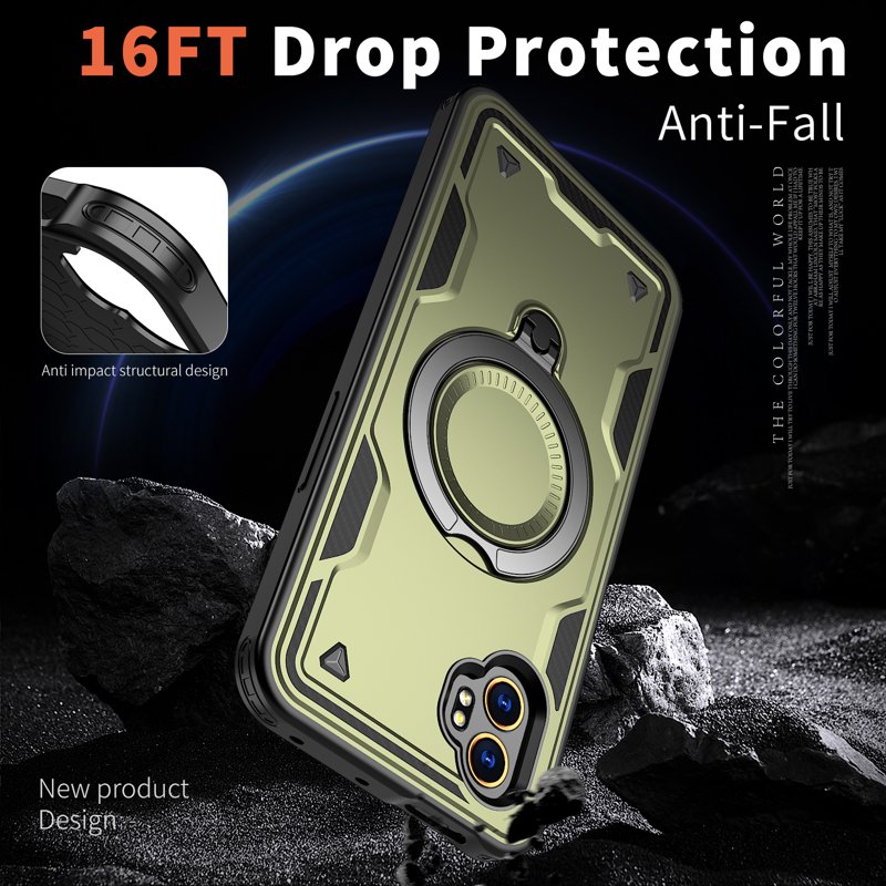Detta fodral erbjuder militärklassat skydd för din enhet. Tillverkat av hållbara PC- och TPU-material, ger det ett effektivt skydd mot stötar och fall. Med en inbyggd kickstand kan du enkelt njuta av handsfree-visning i olika vinklar. Fodralet är också kompatibelt med MagSafe-laddare för snabb och säker laddning.