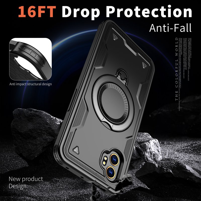 Vårt telefonfodral erbjuder militärklassat skydd för din enhet. Tillverkat av hållbara PC- och TPU-material, ger det stöt- och fallskydd. Med en inbyggd kickstand och MagSafe-kompatibilitet är detta fodral både praktiskt och funktionellt. Skydda din telefon i tuffa förhållanden utan att kompromissa med stil eller användbarhet.