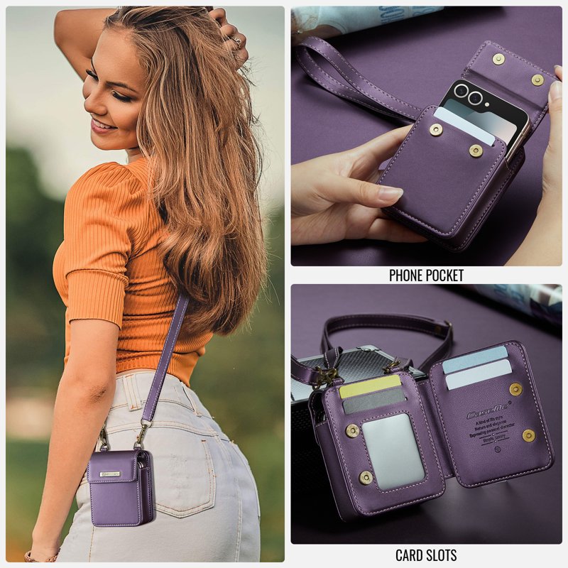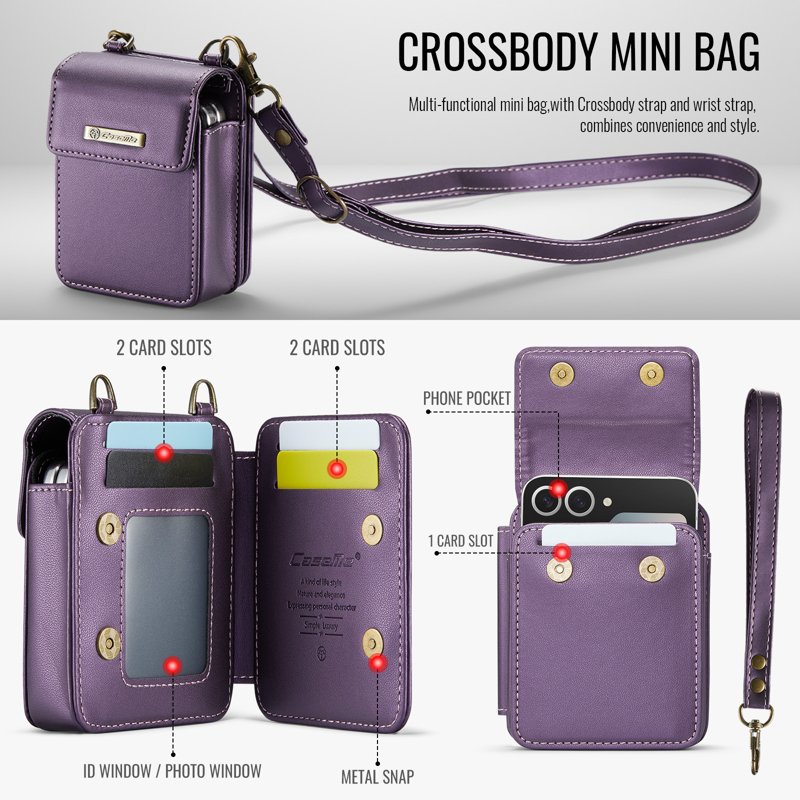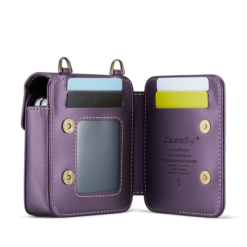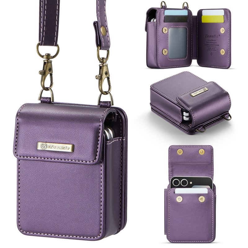 Denna mångsidiga axelväska är perfekt för att säkert bära din Samsung Z Flip mobiltelefon. Den har plats för hörlurar, läppstift och andra små föremål. Med sin stiliga design och praktiska funktioner är den ett utmärkt val för den moderna användaren.