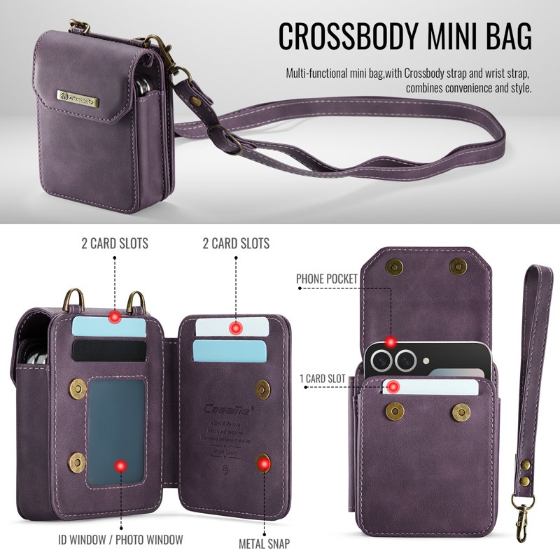 Denna multifunktionella axelväska är perfekt för att säkert bära telefoner från Samsung Z FLIP-serien. Den har även plats för hörlurar, läppstift och andra småsaker. Med sin stiliga design och praktiska funktioner är den ett utmärkt val för den moderna användaren.