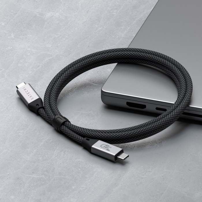Vår USB4 Pro-kabel har en robust svart flätad design som ger enkel användning, enkel förvaring och överlägsen livslängd utan att trassla in sig. Den är idealisk för alla Satechis vägg- och stationära laddare och alla Apples nätadaptrar.