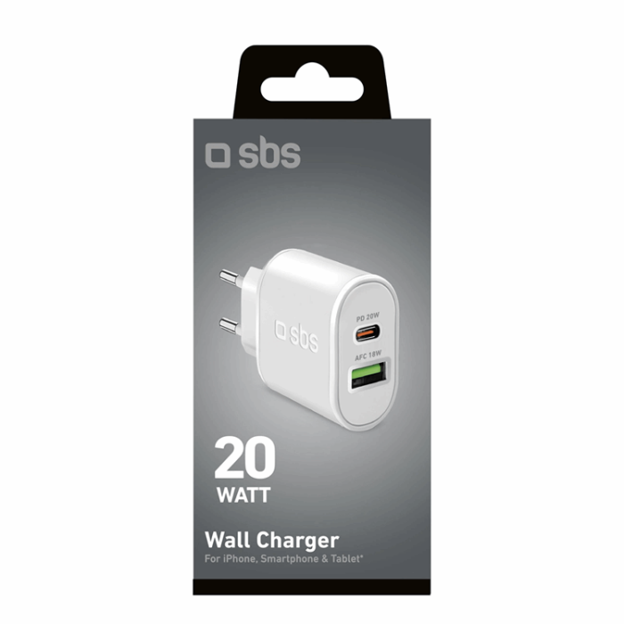SBS Snabbladdare 20W USB-A USB-C med PD - Vit