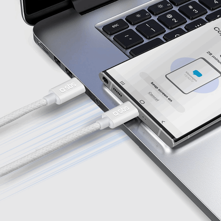 SBS USB-C - USB-C Kabel 1.5m 60W Braided - Vit