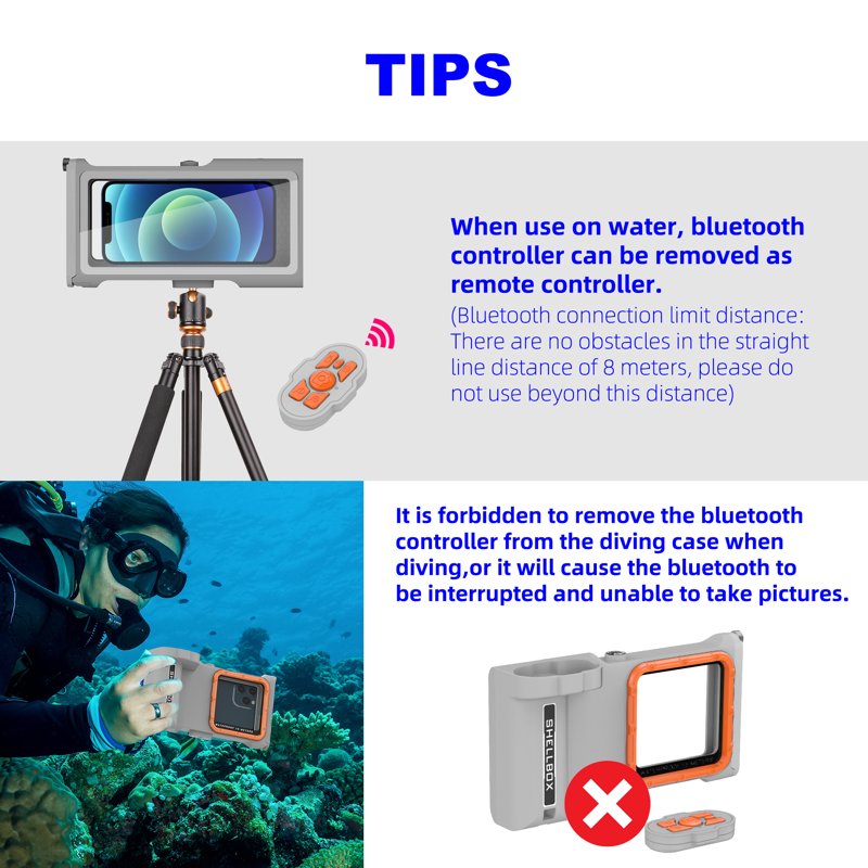 Detta dykfodral skyddar din smartphone och gör det möjligt att ta fantastiska bilder under vattnet. Med en IPX8-vattentålighet kan du dyka ner till 15 meters djup. Den Bluetooth-kompatibla kamerafunktionen ger enkel åtkomst till fotografering. Perfekt för dykare och äventyrslystna.