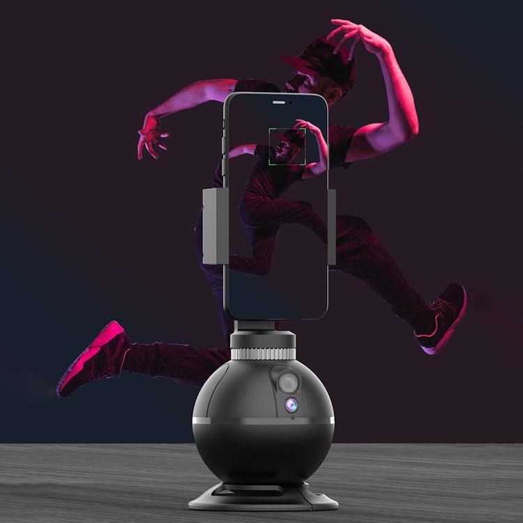 Smart Auto Tracking Mobilhållare Sfärisk Formad 360-graders Rotation AI Ansiktsrörelsespårning Telefonhållare för Selfies Vlogginspelning Livestreaming YT-10 - Svart