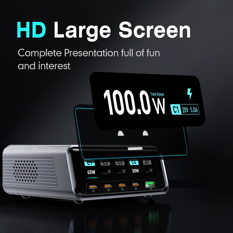Smart Digital Display GaN-Laddningsstation USB-A + 4-Typ-C 265W WLX-60D - EU Plug