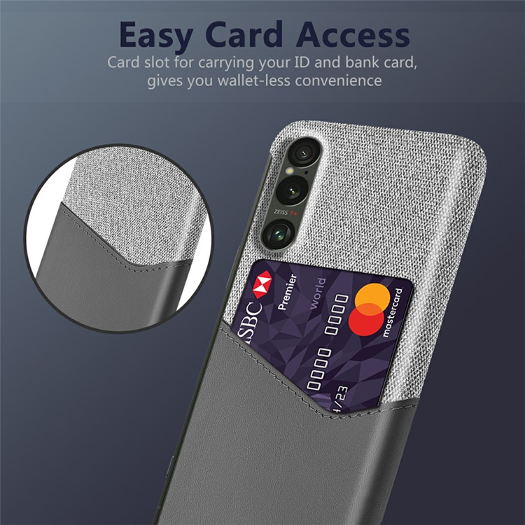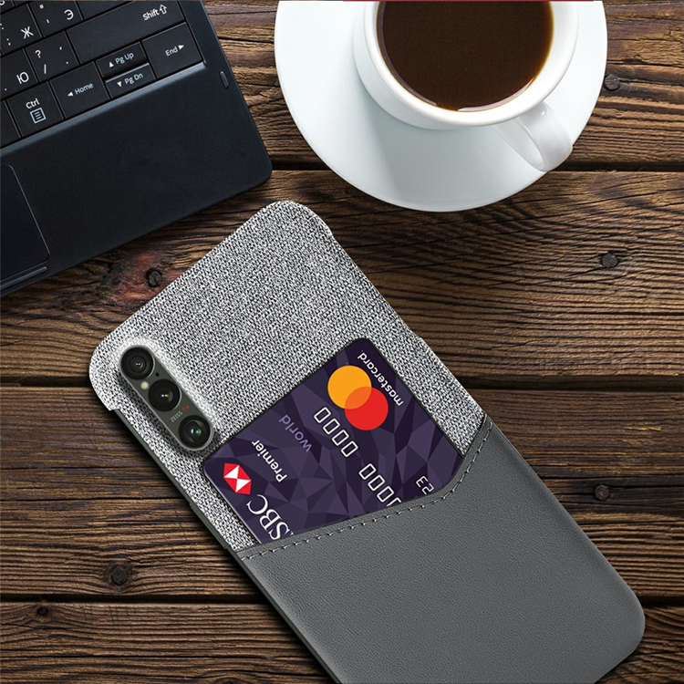 Sony Xperia 1 VII Mobilskal med Korthållare och Kickstand PU-läder Flip Tyg Texture - Grå