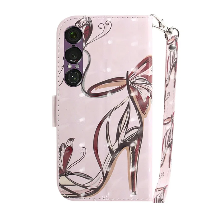 Sony Xperia 1 VII Plånboksfodral Printing Pattern Läder med Handledsrem - Butterfly High Heels