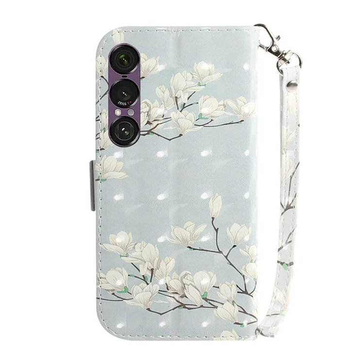 Sony Xperia 1 VII Plånboksfodral Printing Pattern Läder med Handledsrem - Magnolia