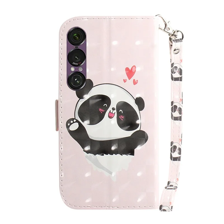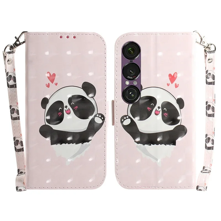Sony Xperia 1 VII Plånboksfodral Printing Pattern Läder med Handledsrem - Angry Panda