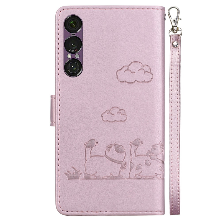 Sony Xperia 1 VII Plånboksfodral RFID Blocking Kitten Pattern TPU + Läder Med Strap - Rosa