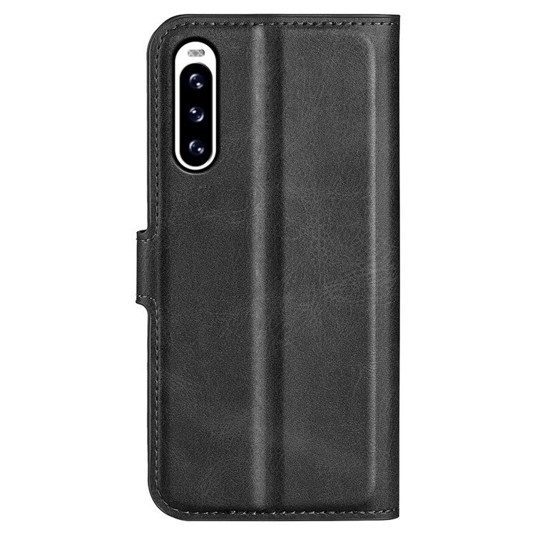 Sony Xperia 10 V Plånboksfodral Folio Flip Calf Texture Läder Square Magnetic Clasp Stativ - Svart
