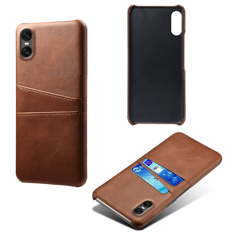 Sony Xperia 10 VII Mobilskal med Dual Kortfack PU-läder + Hård PC - Brun
