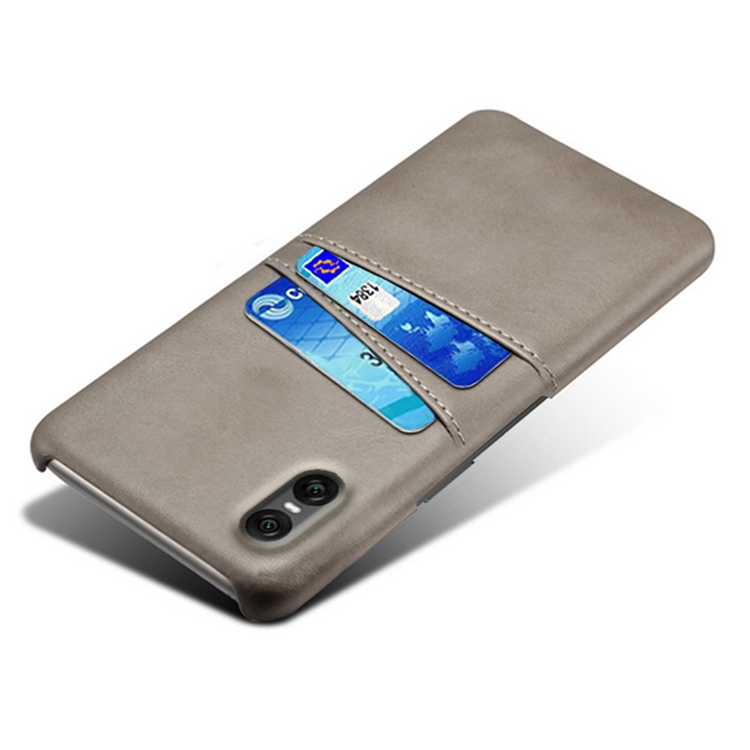 Sony Xperia 10 VII Mobilskal med Dual Kortfack PU-läder + Hård PC - Grå
