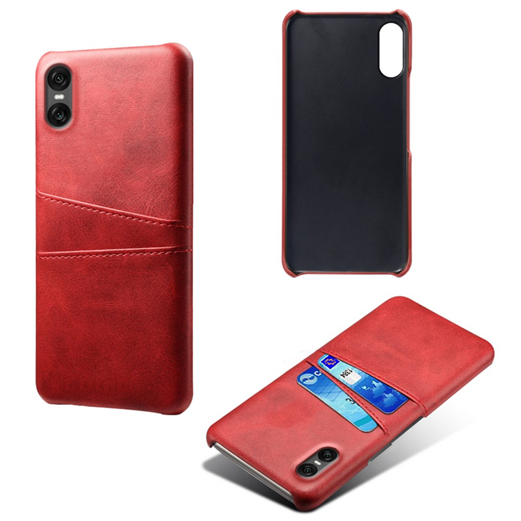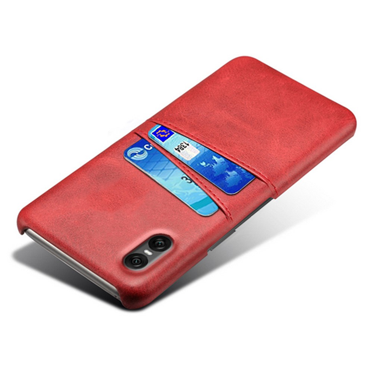 Sony Xperia 10 VII Mobilskal med Dual Kortfack PU-läder + Hård PC - Röd