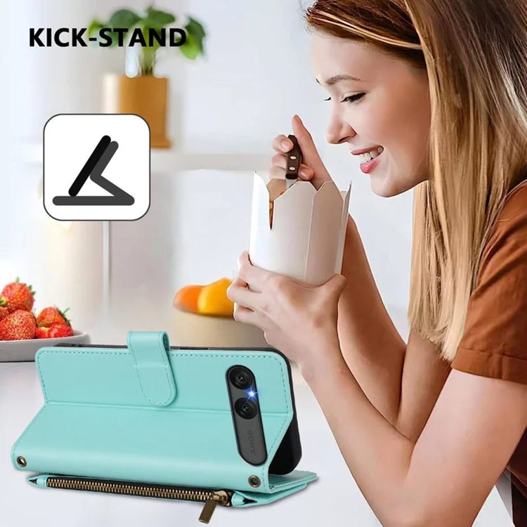 Utöver sin stilrena design erbjuder detta Plånboksfodral allt du behöver i en kompakt lösning. Med hela sex kortfack, ett blixtlåsförsett fack och en separat plånboksdel håller du dina värdesaker organiserade och säkra. Den inbyggda RFID-blockeringen skyddar dina kort mot digital stöld, medan den magnetiska stängningen ger snabb och trygg åtkomst. Dessutom kan fodralet fällas ut till ett praktiskt stativ för handsfree-visning, och tack vare stöd för trådlös laddning behöver du aldrig ta av fodralet vid laddning.