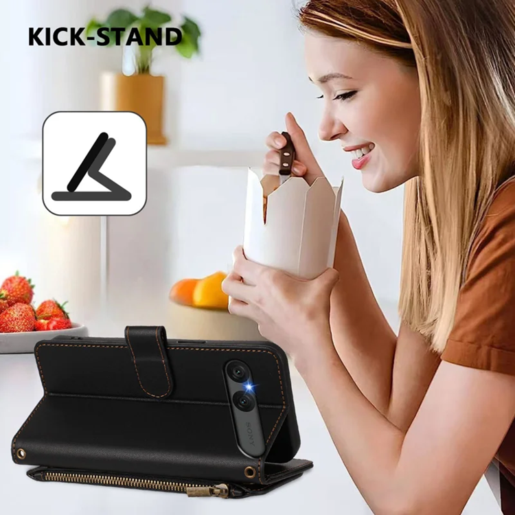 Utöver sin stilrena design erbjuder detta Plånboksfodral allt du behöver i en kompakt lösning. Med hela sex kortfack, ett blixtlåsförsett fack och en separat plånboksdel håller du dina värdesaker organiserade och säkra. Den inbyggda RFID-blockeringen skyddar dina kort mot digital stöld, medan den magnetiska stängningen ger snabb och trygg åtkomst. Dessutom kan fodralet fällas ut till ett praktiskt stativ för handsfree-visning, och tack vare stöd för trådlös laddning behöver du aldrig ta av fodralet vid laddning.