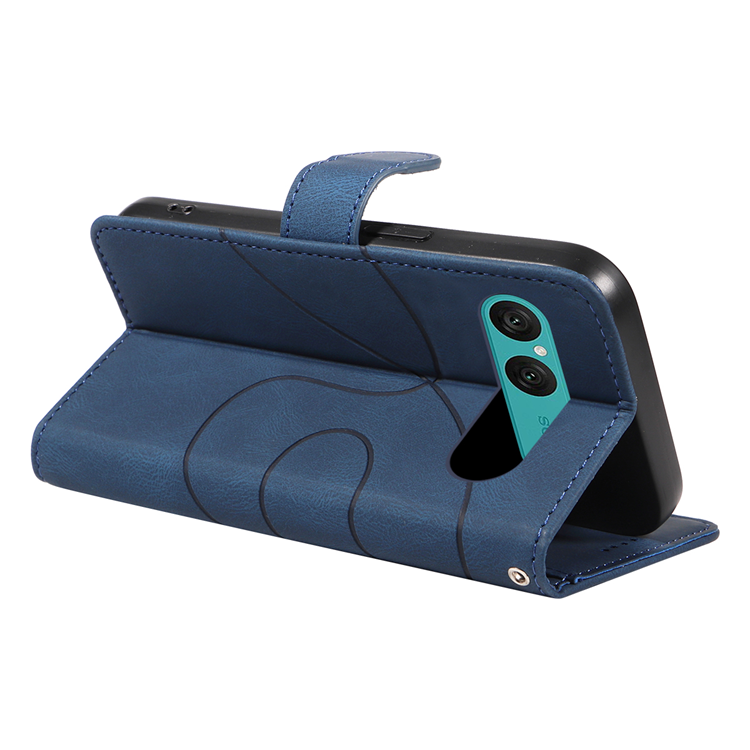 Sony Xperia 10 VII Plånboksfodral Curved Line Design Läder - Blå