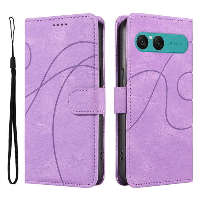 Sony Xperia 10 VII Plånboksfodral Curved Line Design Läder - Ljuslila