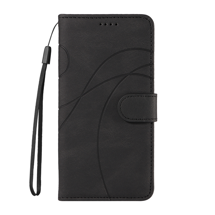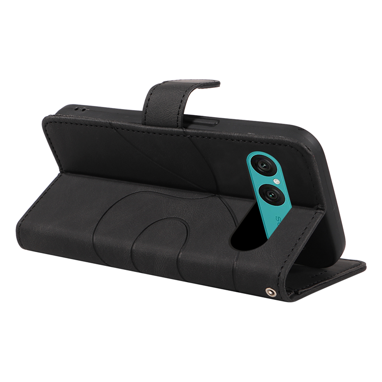 Sony Xperia 10 VII Plånboksfodral Curved Line Design Läder - Svart