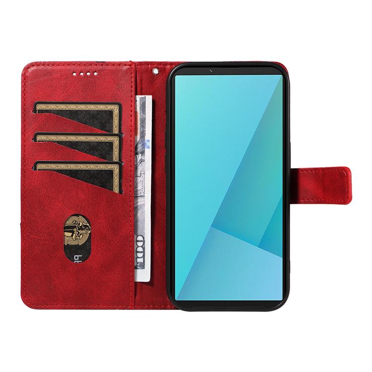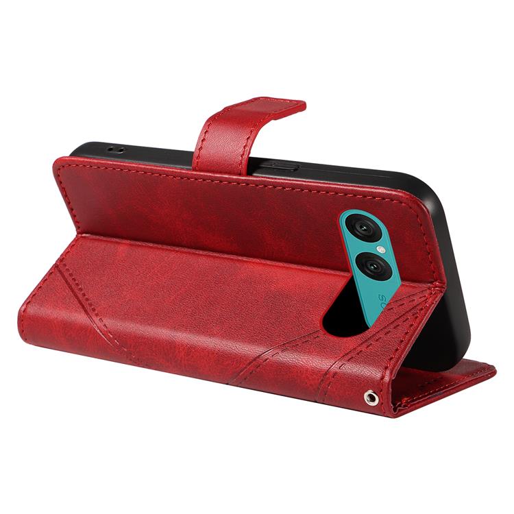 Sony Xperia 10 VII Plånboksfodral Geometric Lines Design Med Handledsrem - Röd