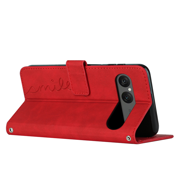 Det charmiga hjärtmönstret och den graverade texten “smile” ger skalet en personlig och trendig touch – ett uttryck för både stil och positiv energi. Med sin smarta design, magnetlås och praktiska kortfack gör detta mobilskal livet enklare och snyggare varje dag.