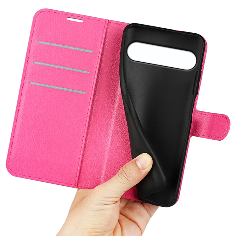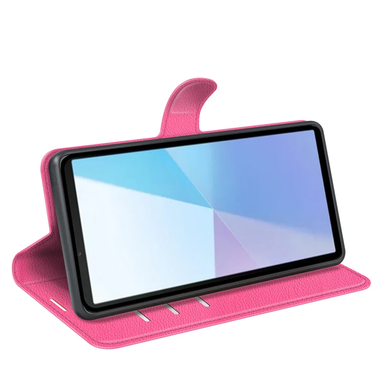 Sony Xperia 10 VII Plånboksfodral Litchi Texture Shockproof - Rosröd
