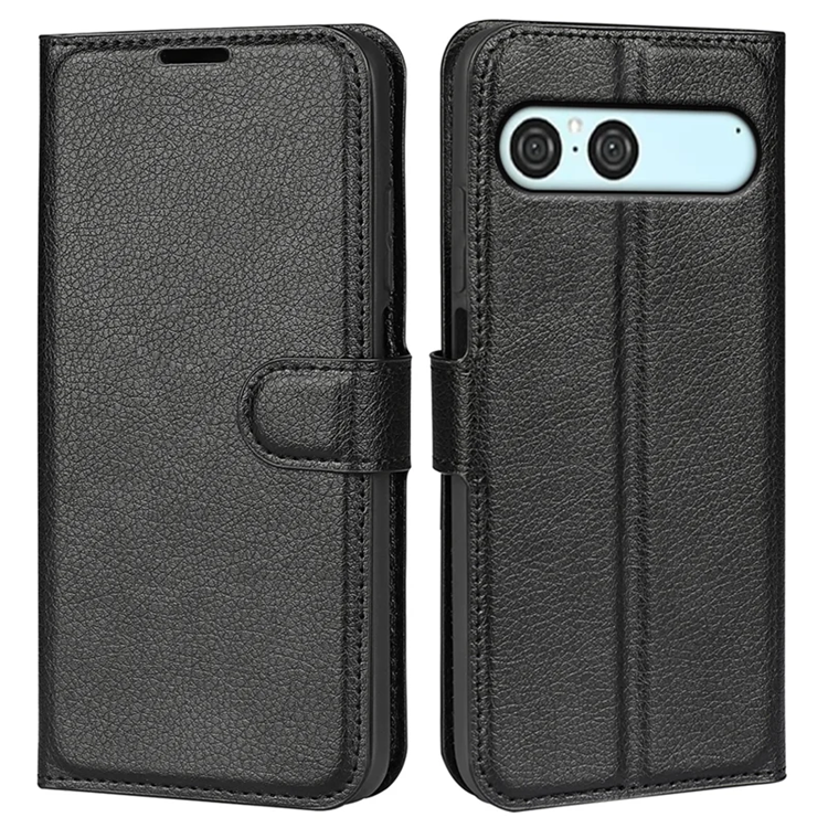 Sony Xperia 10 VII Plånboksfodral Litchi Texture Shockproof - Svart